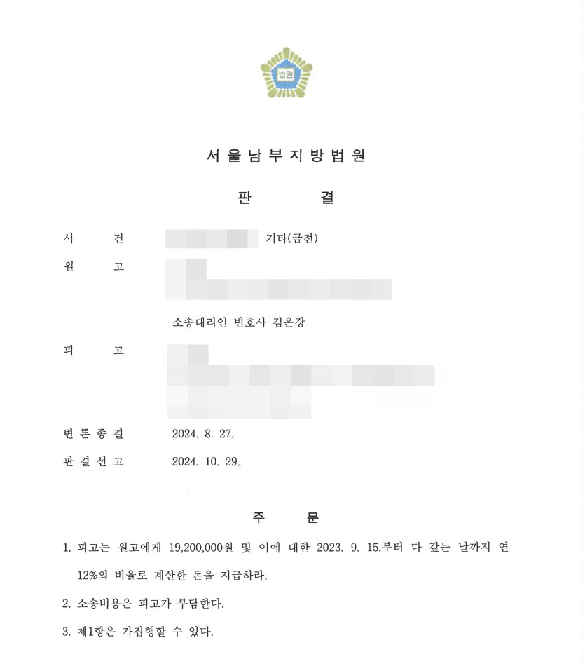 법원은 원고측 상가로이어의 청구를 전부 받아들여 미지급 수익금에 이자까지 붙여 지급하도록 판결하였습니다.