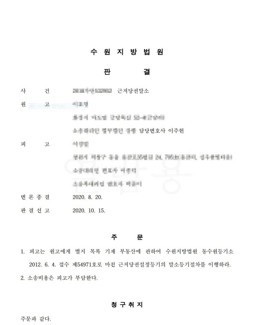 허위 서류 입증으로 근저당권 말소 승소